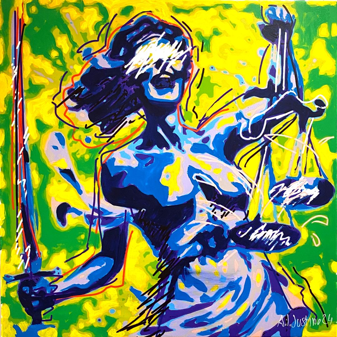 A.I. Justino ist ein faszinierender Künstler, der aus einfachen Verhältnissen stammt und sein Jurastudium abbrach, um sich voll und ganz der Malerei zu widmen. Seine Werke bieten eine frische Interpretation der blinden Richterin „Justitia“ und thematisieren den ewigen Konflikt zwischen Recht und Gerechtigkeit. Diese Neuinterpretationen fordern den Betrachter auf, über die oft willkürlichen Vorstellungen von Recht nachzudenken.